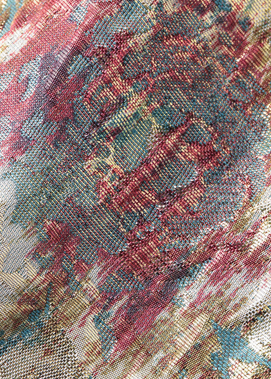 Vintage Blue V Neck Jacquard Patchwork Cotton Cardigan Fall