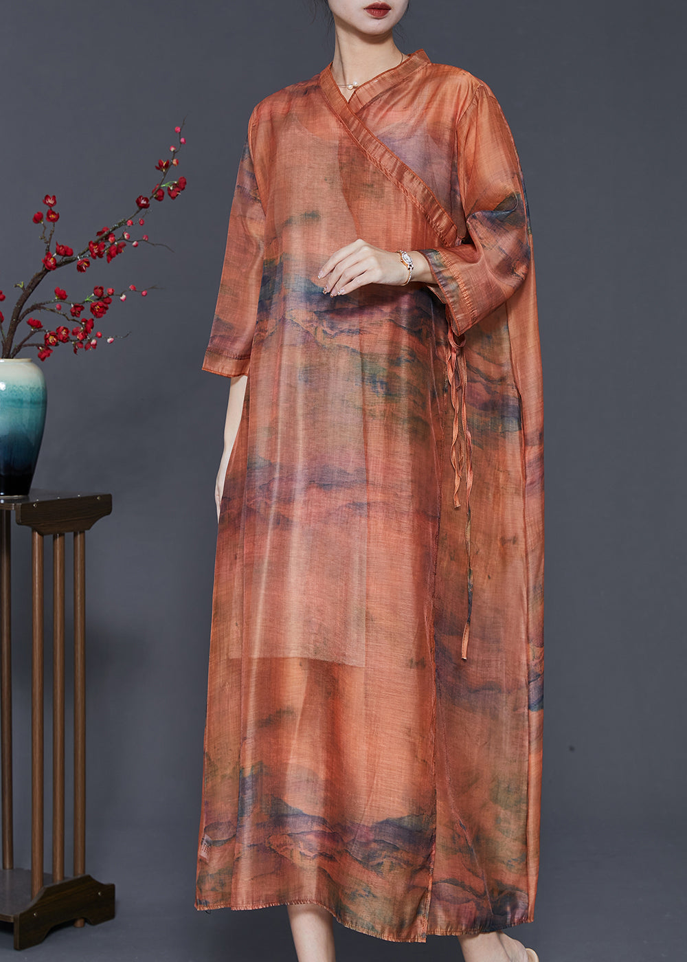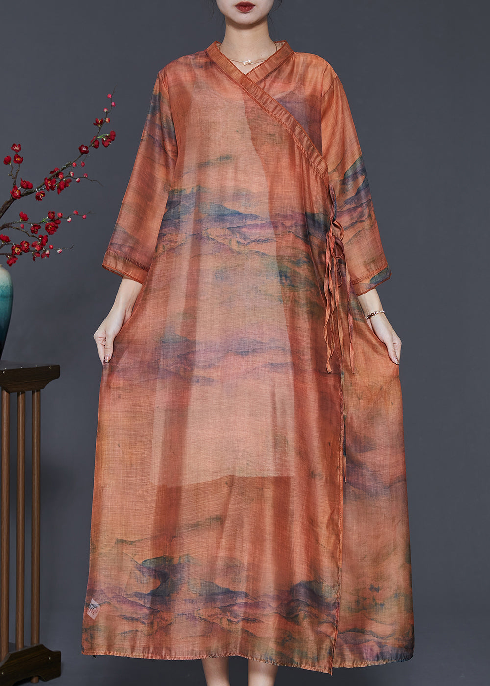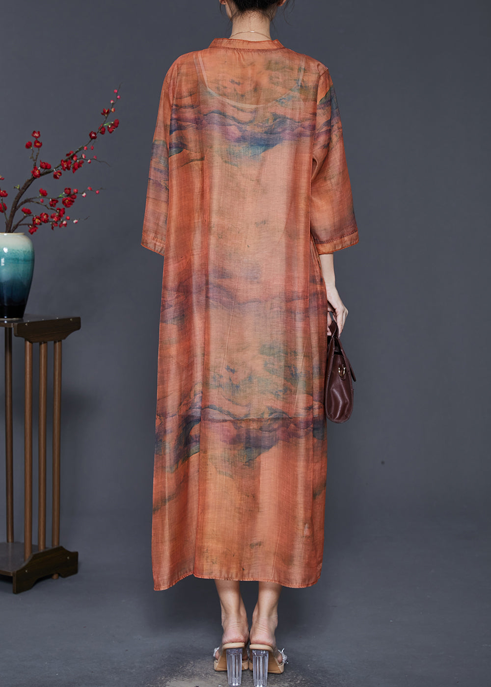 Vintage Caramel Oversized Print Linen Robe Dresses Summer