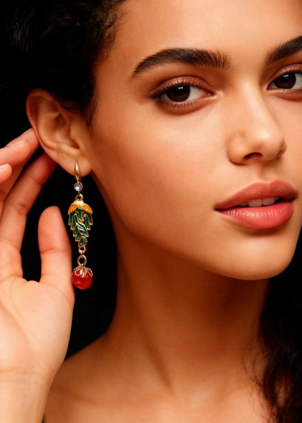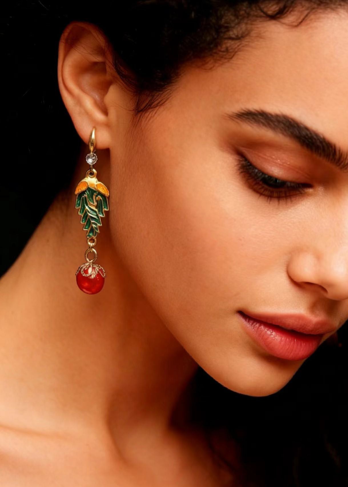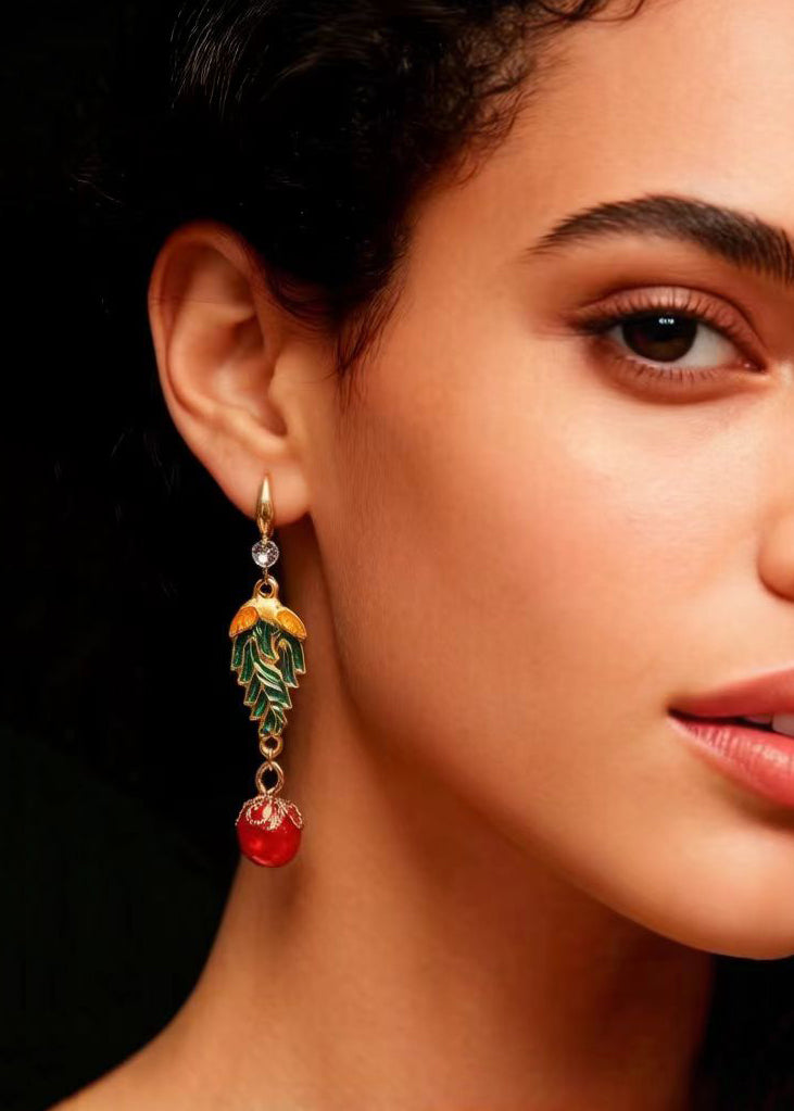 Vintage Red Pearl Cloisonne Gilding Drop Earrings