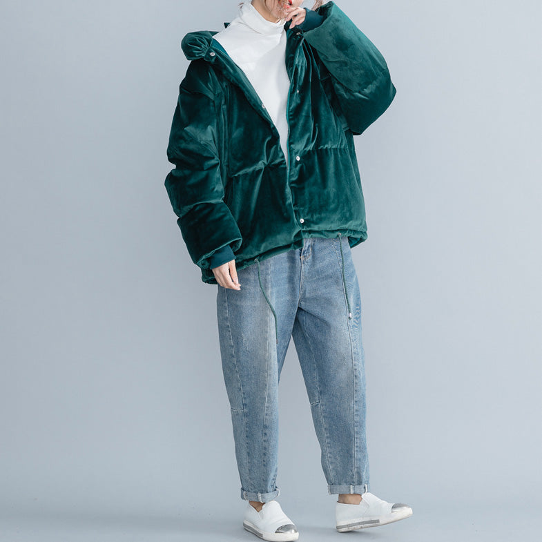 Warm army green womens parkas Loose fitting stand collar down jacket women thick winter coats