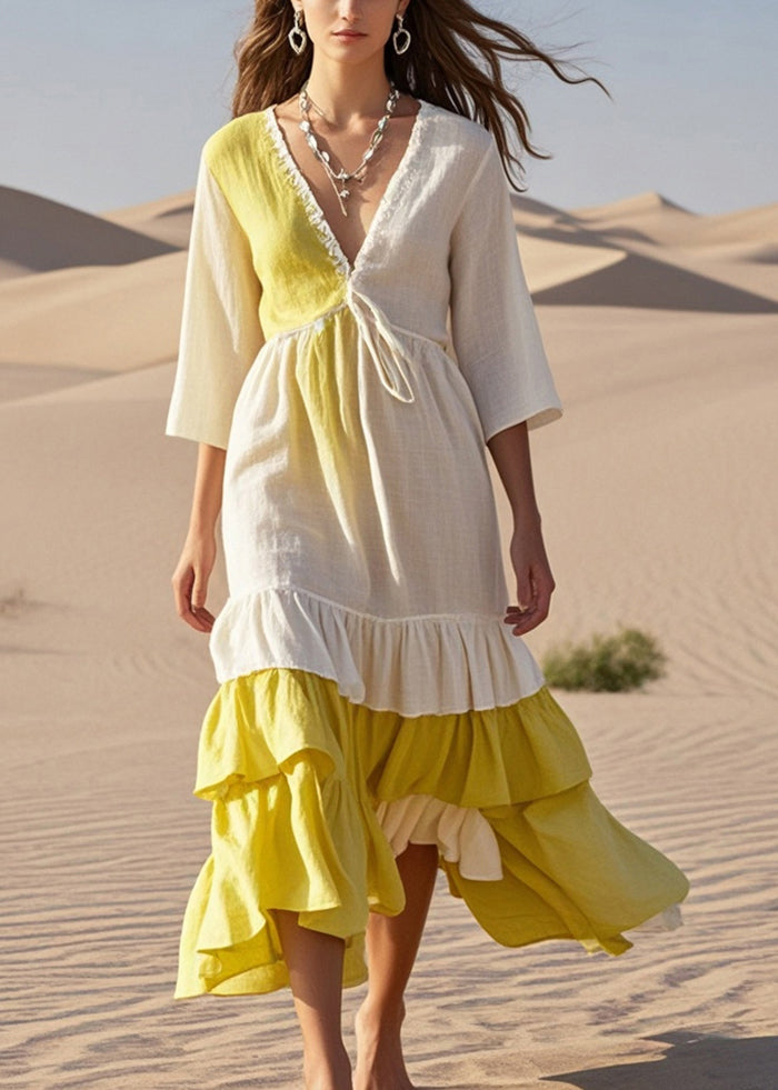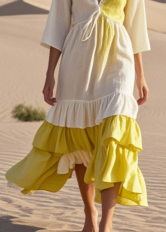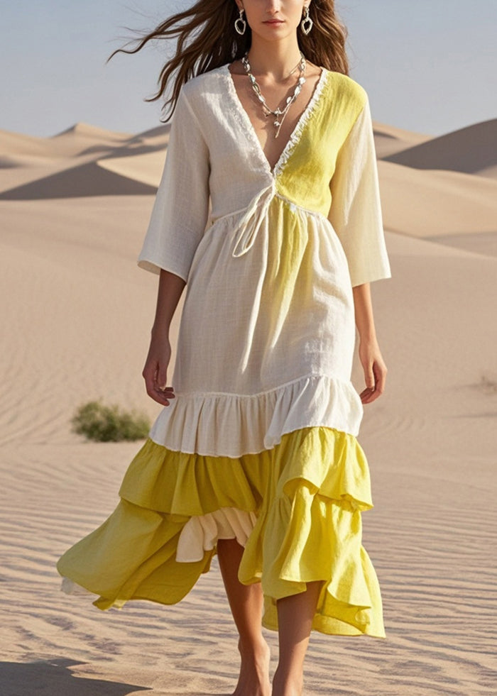 White Patchwork Cotton Dresses Tie Dye Bracelet Sleeve