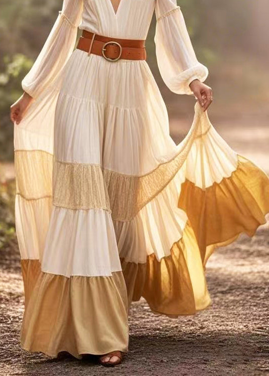 White Patchwork Exra Large Hem Holiday Tunic Dress V Neck Spring