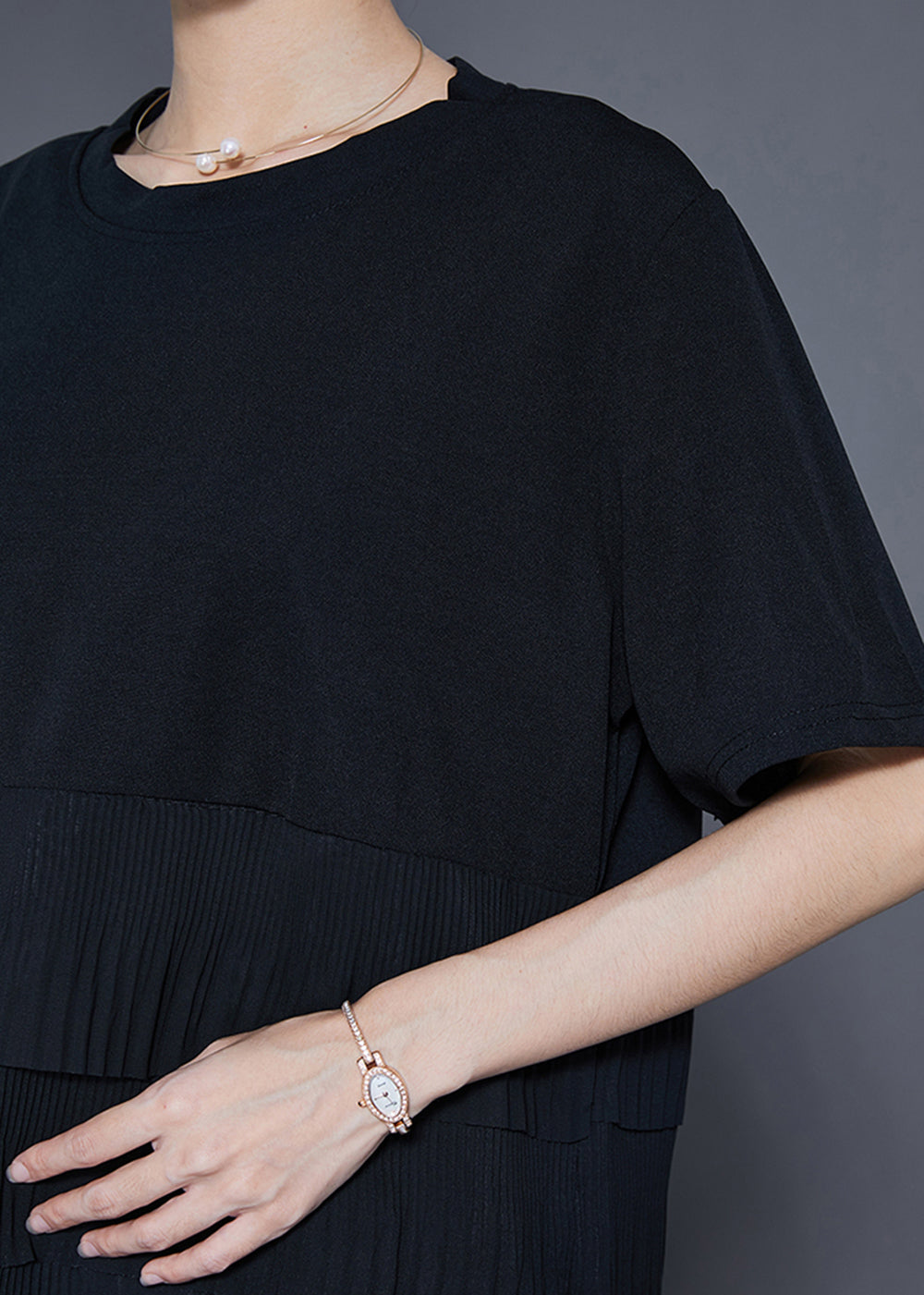 Women Black Layered Ruffles Wrinkled Chiffon Long Dress Summer