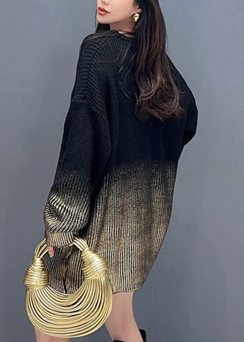 Women Gradient Color V Neck Cozy Cotton Knit Sweaters Long Sleeve