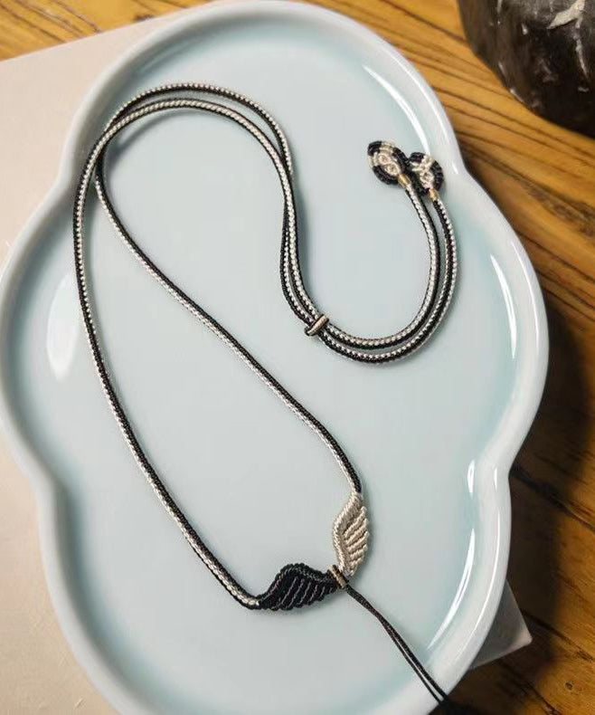 Women Green Fabric Art Handwoven Tassel Pendant Necklace