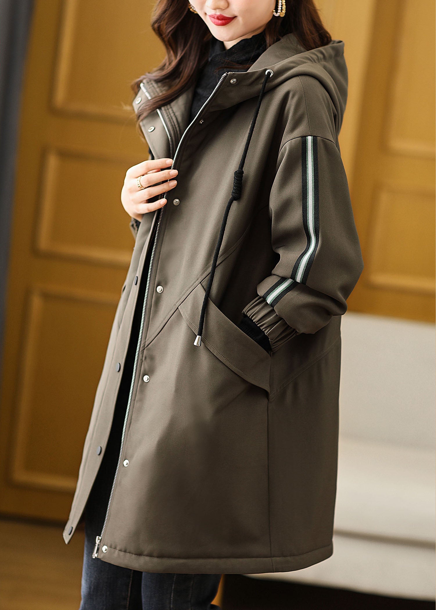 Women Maroon Zippered Patchwork Drawstring Button Thick Hoodies Down Jackets Winter