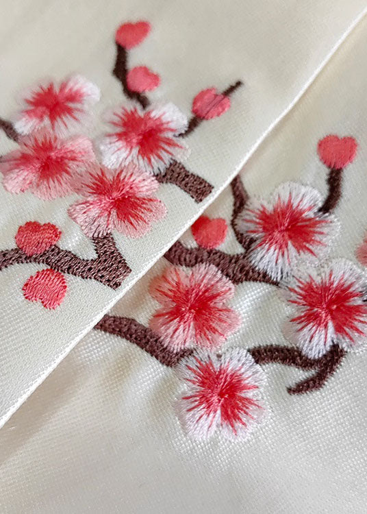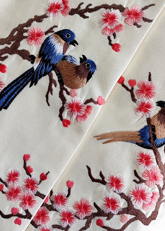Women White Embroideried Patchwork Silk Outwear Long Sleeve