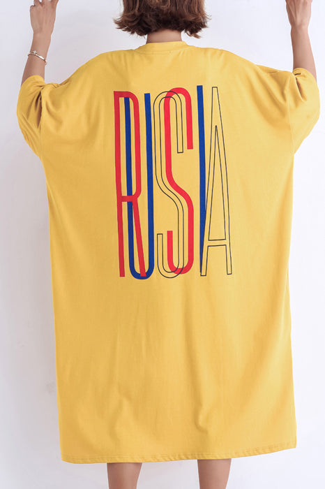 Women yellow cotton dress plus size Fabrics o neck side open Art Summer Dresses