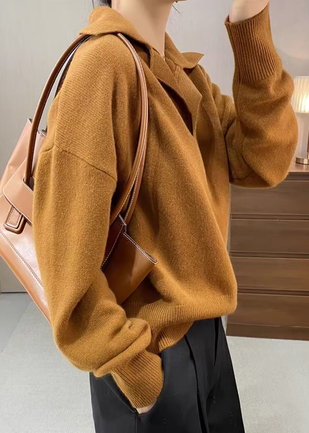 2025 New Grey Peter Pan Collar Knit Sweater Tops Spring