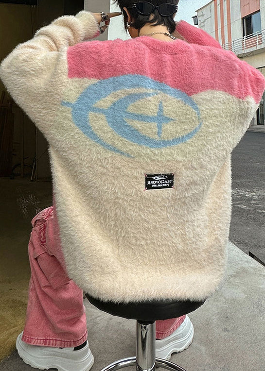 Art Pink O Neck Thick Patchwork Ma Hai Mao Mens Sweaters Winter