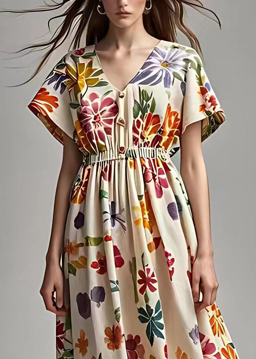 Beautiful Apricot V Neck Print Cotton Maxi Dresses Summer