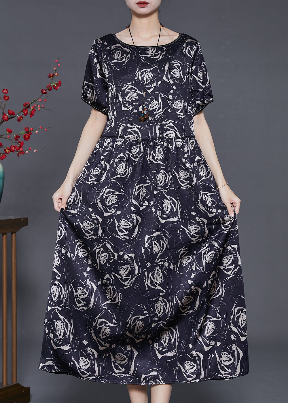 Beautiful Black Floral Silm Fit Silk Long Dresses Summer