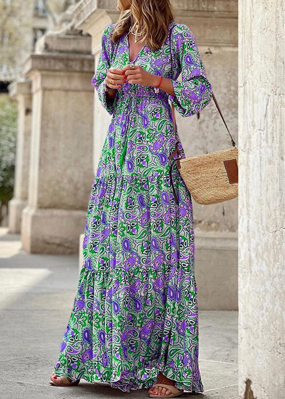 Beautiful Red V Neck Print Lace Up Ankle Dress Fall