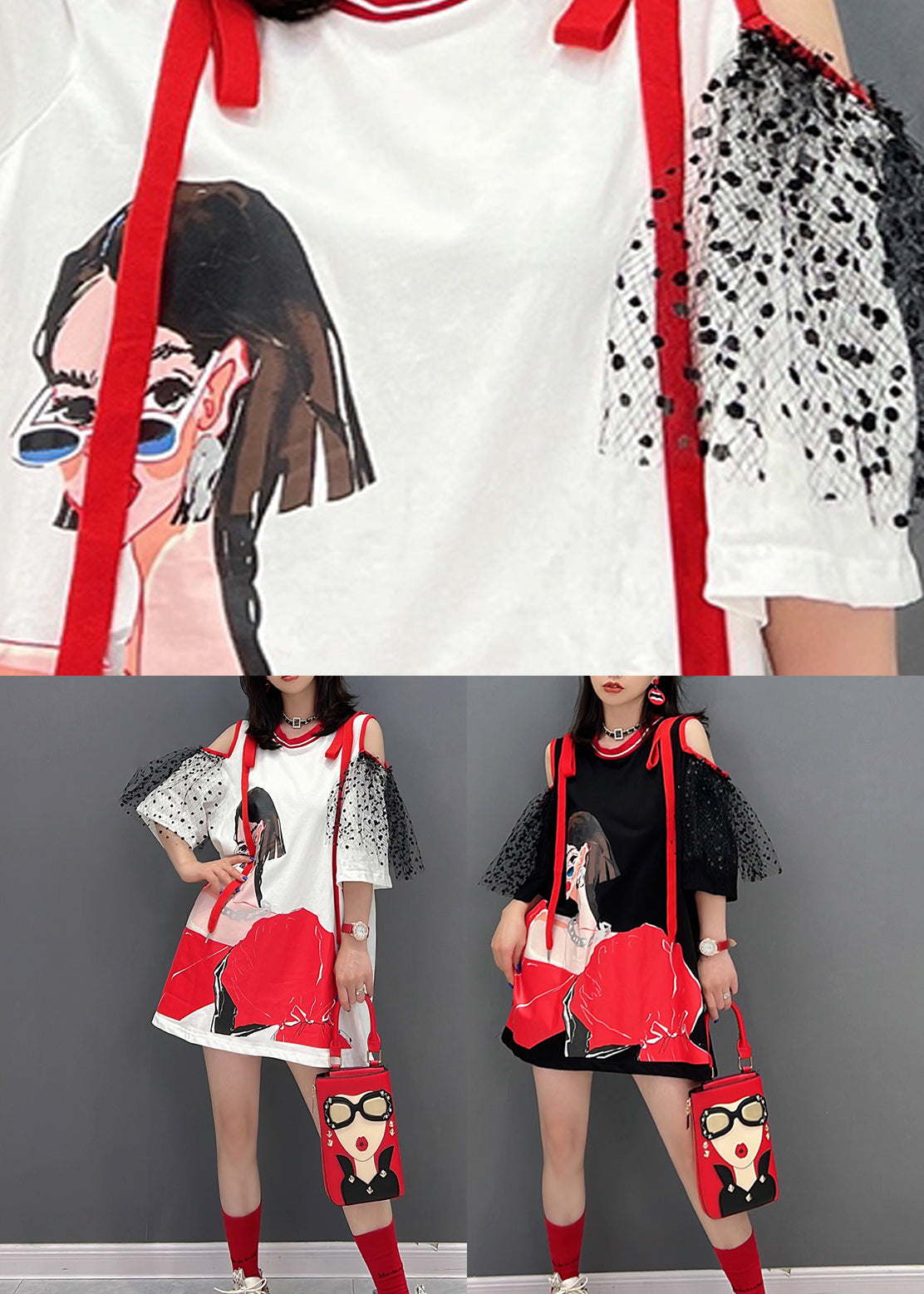 Black O-Neck Tulle Patchwork Belle Mid Dress Half Sleeve