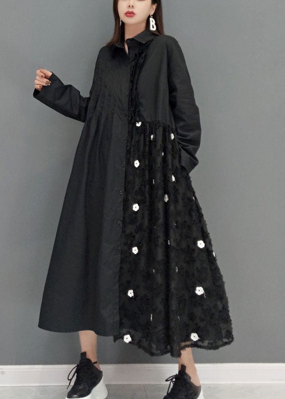 Bohemian Black lace Patchwork shirt Dresses Spring