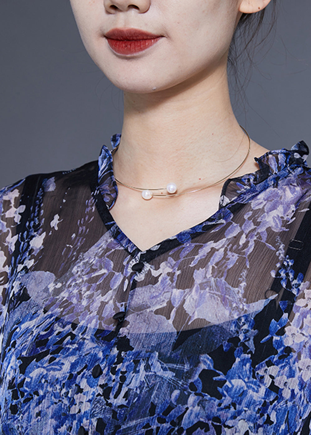 Bohemian Blue V Neck Ruffled Print Chiffon Holiday Dresses Two Piece Set Summer