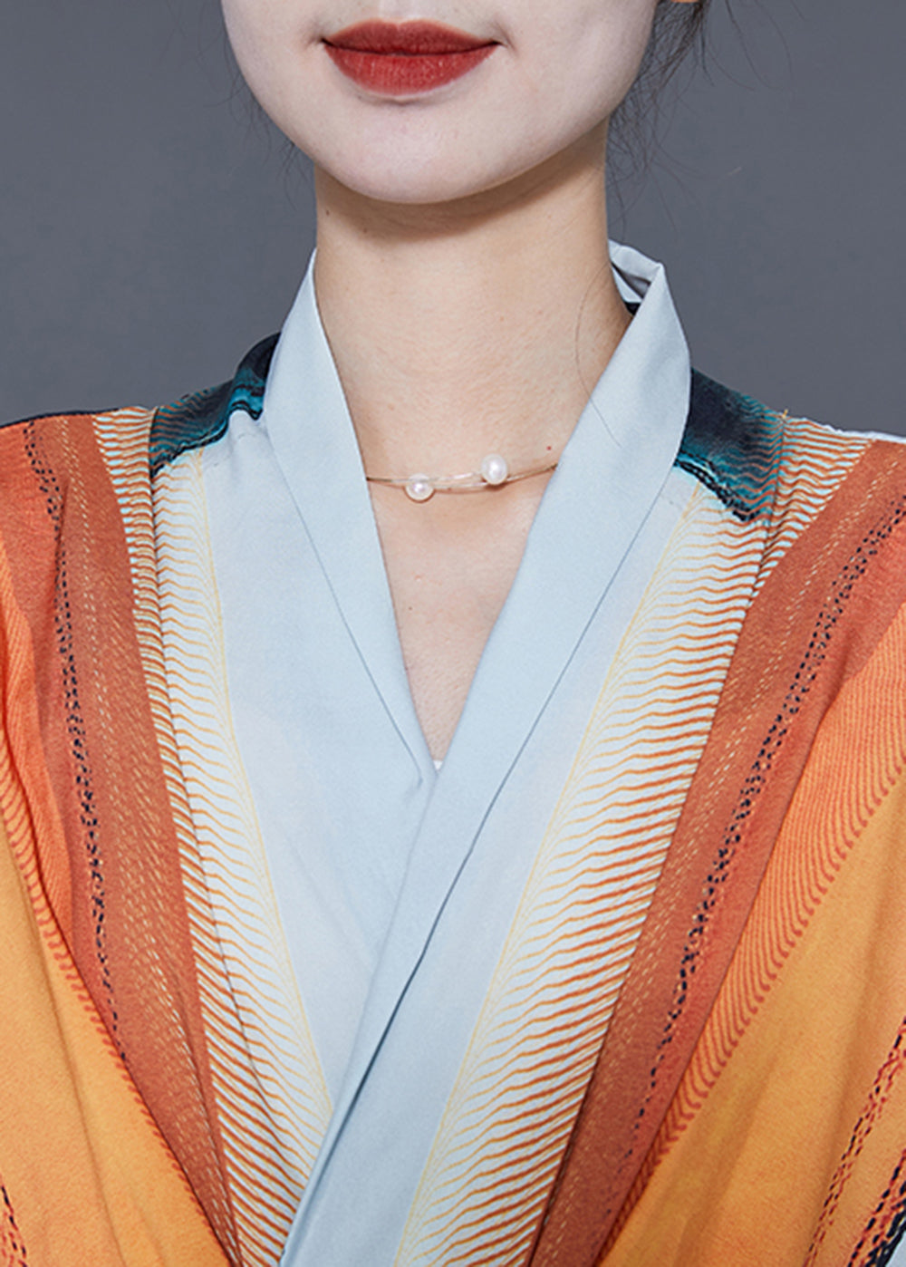Bohemian Orange V Neck Print Chiffon Robe Dresses Summer