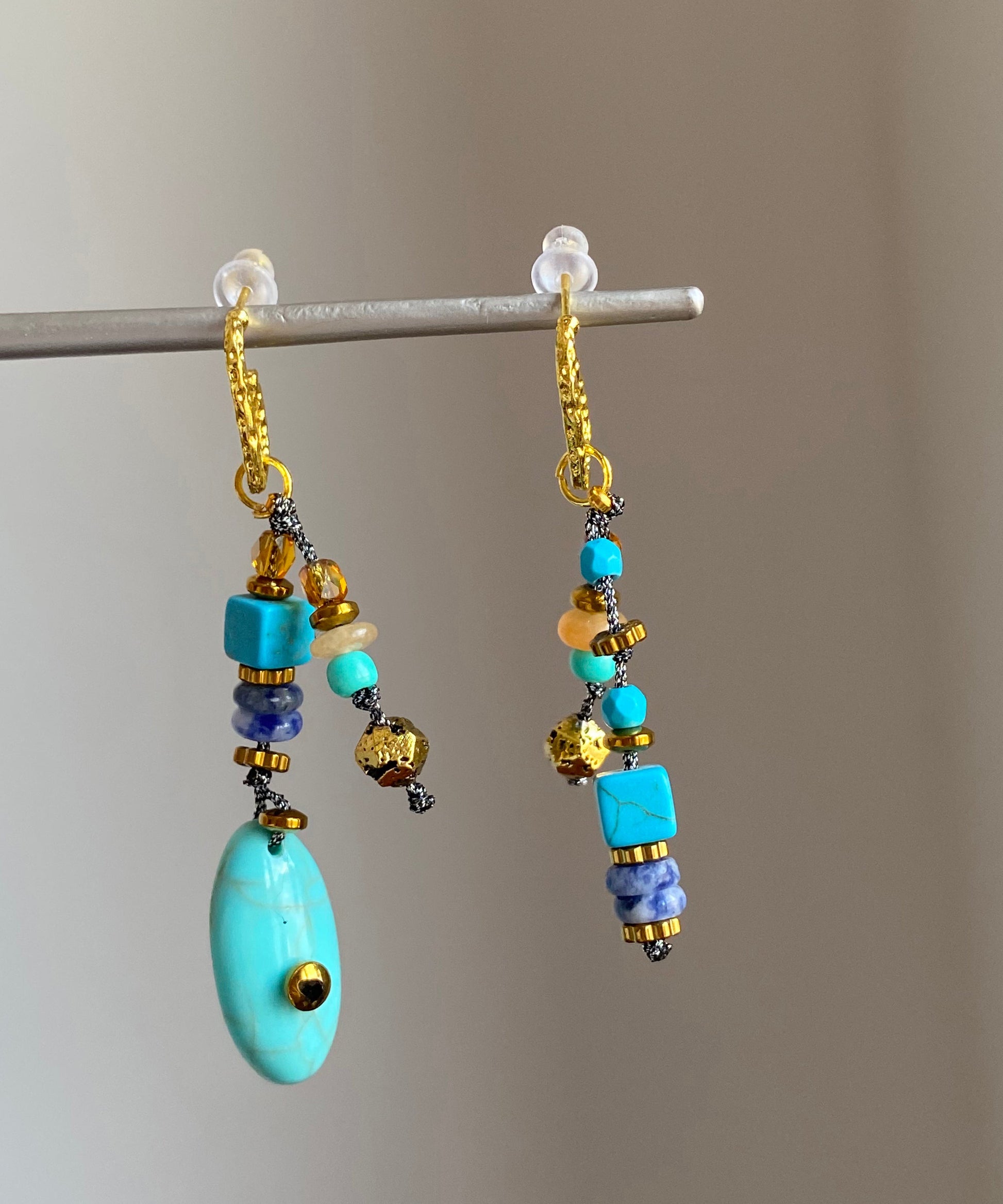 Boho Copper Overgild Asymmetrical Natural Stone Drop Earrings