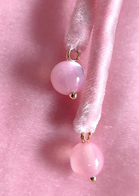 Boho Pink O-Neck Tasseled Patchwork Silk Velour Tops Spring