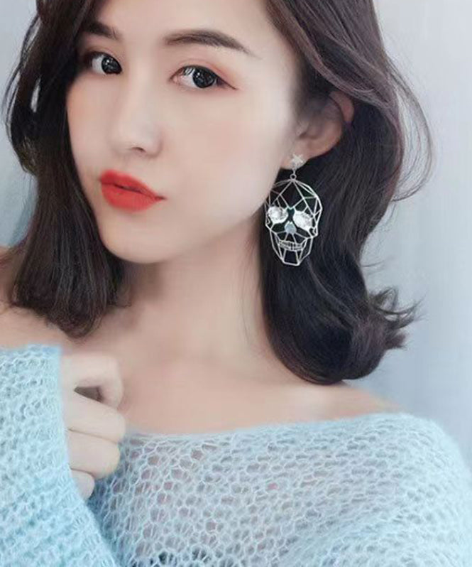 Boutique Black Metal Zircon Human Skeleton Hollowing Out Drop Earrings