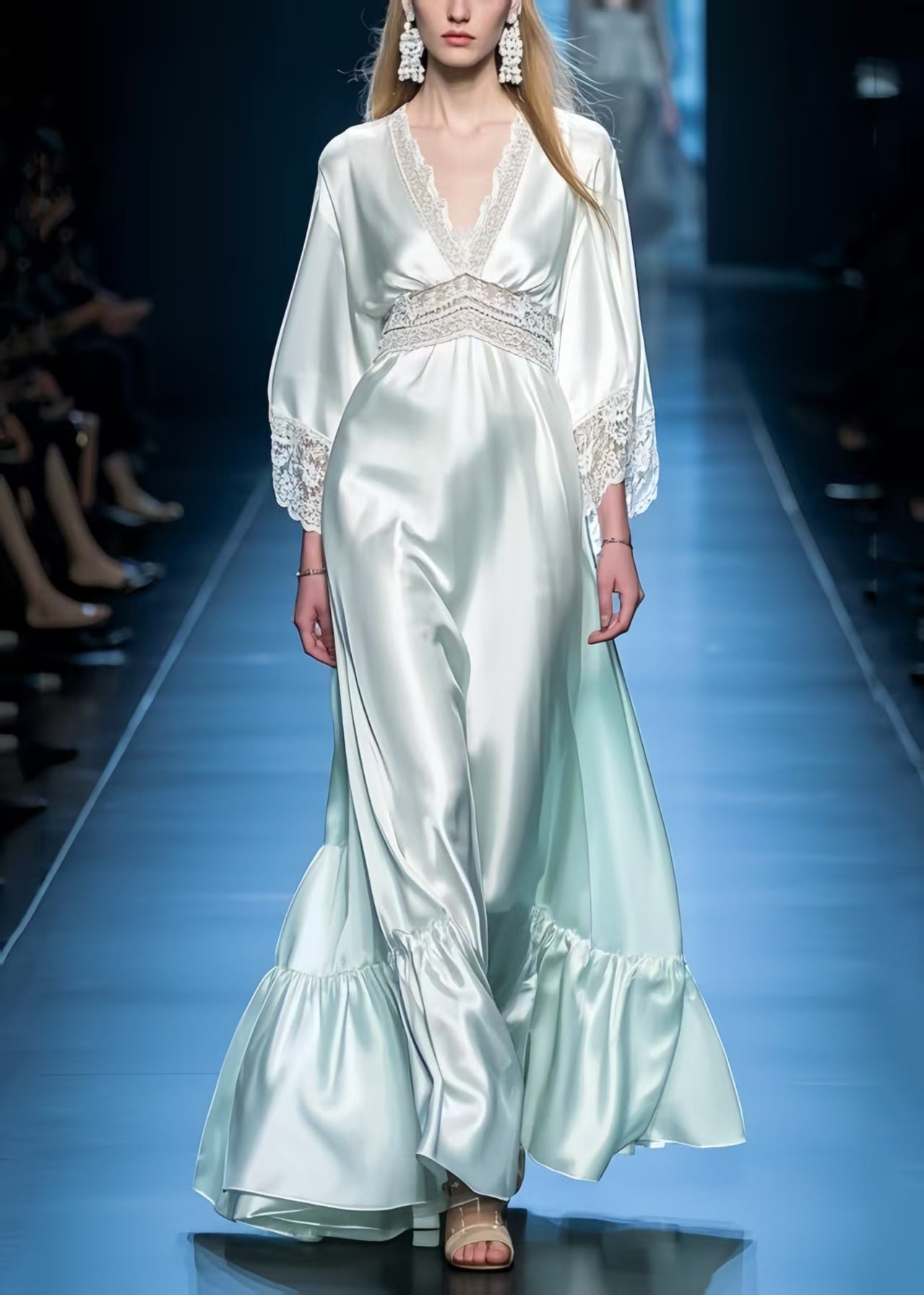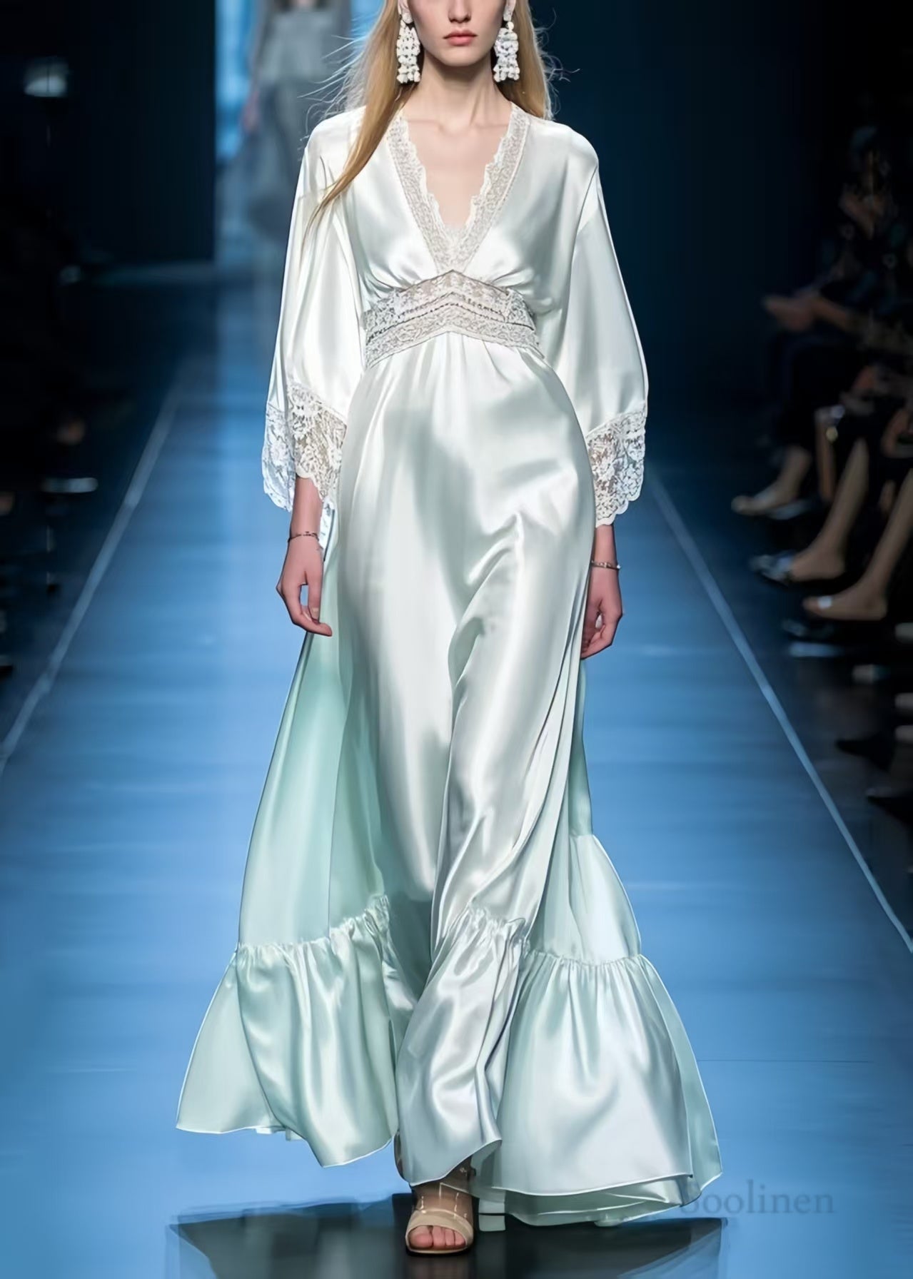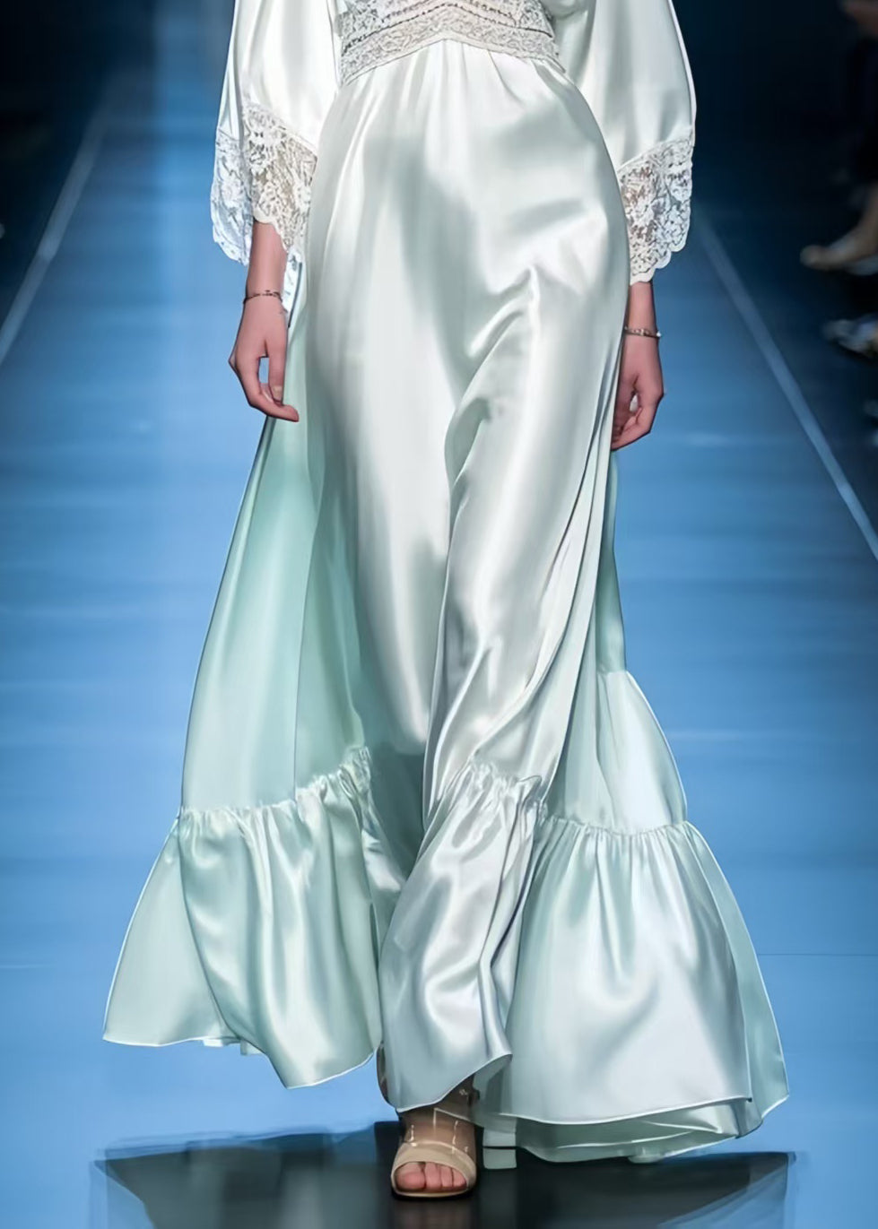 Boutique Light Green Patchwork Lace Exra Large Hem Maxi Dresses