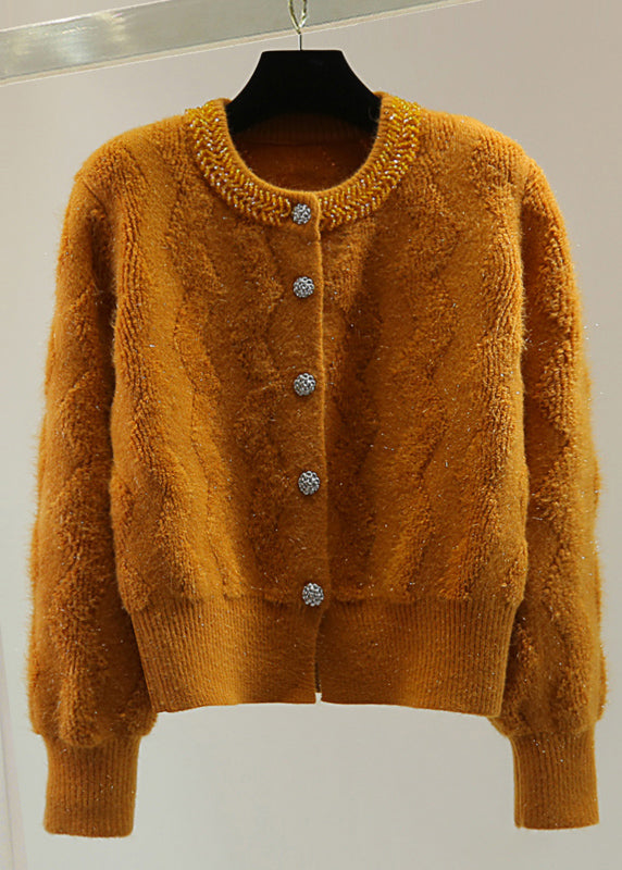 Boutique Orange Nail Bead Thick Cotton Knit Sweater Tops Winter