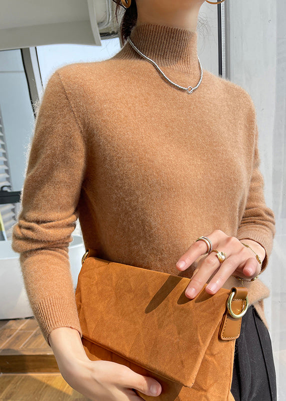 Boutique Pink Half Hign Neck Versatile Woolen Knitted Sweaters Fall