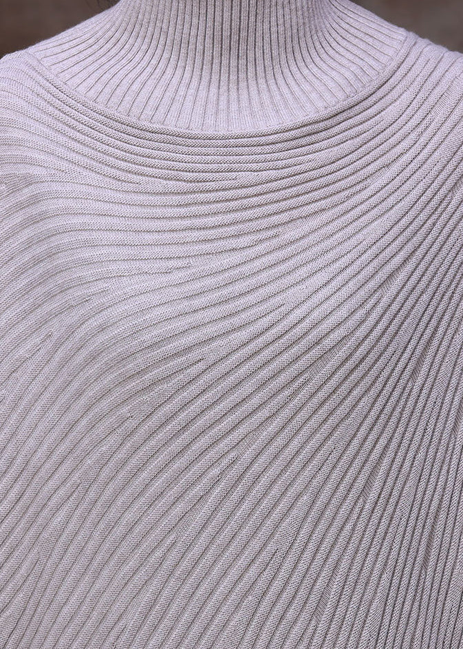Casual Apricot Turtleneck Low High Design Woolen Knit Ankle Sweater Dress Long Sleeve