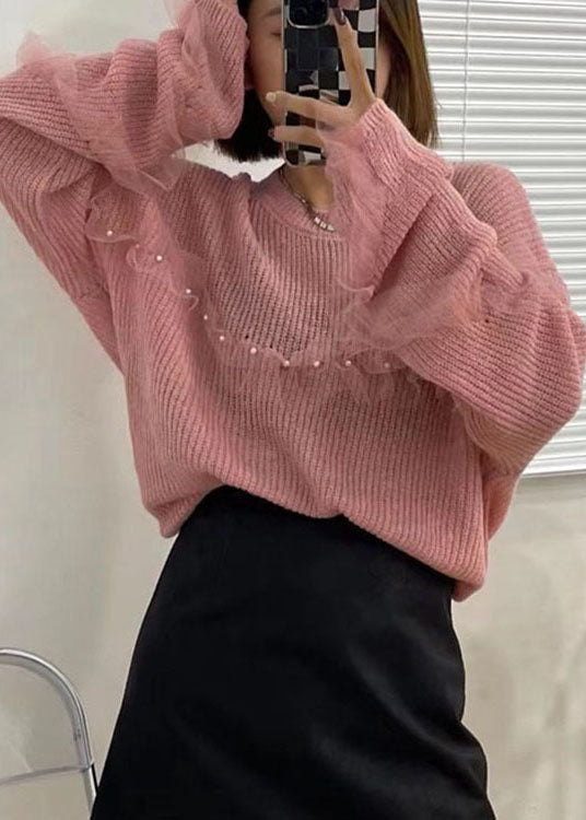 Casual Purple Tulle Patchwork Nail bead Fall Knit sweaters
