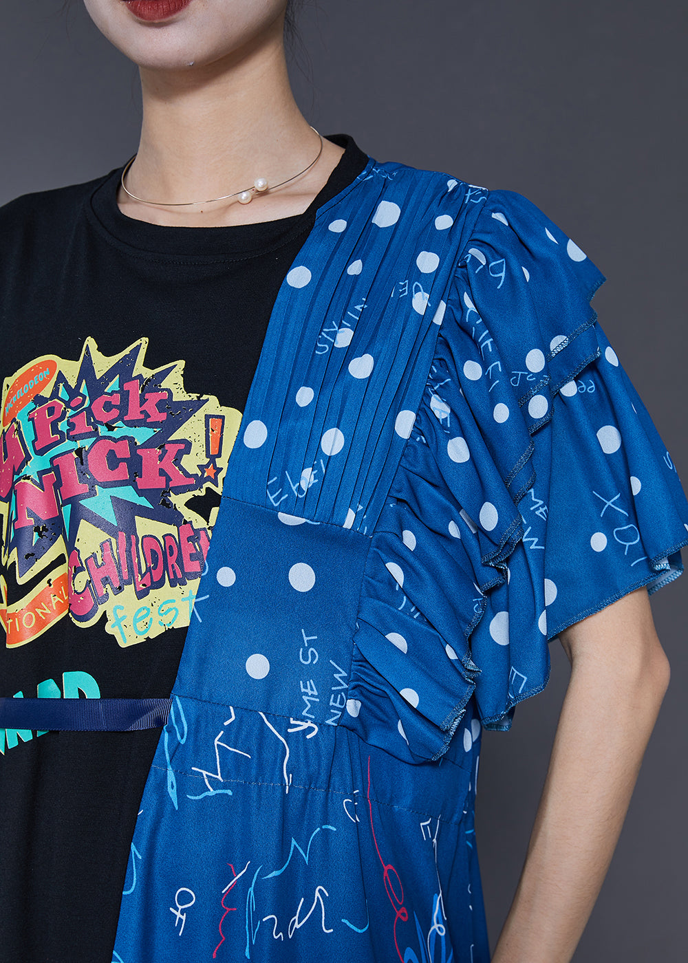 Chic Colorblock Asymmetrical Patchwork Cotton Long Dress Summer