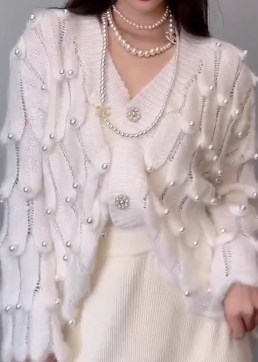Chic Pink Tie Dye V Neck Nail Bead Patchwork Knit Cardigan Fall