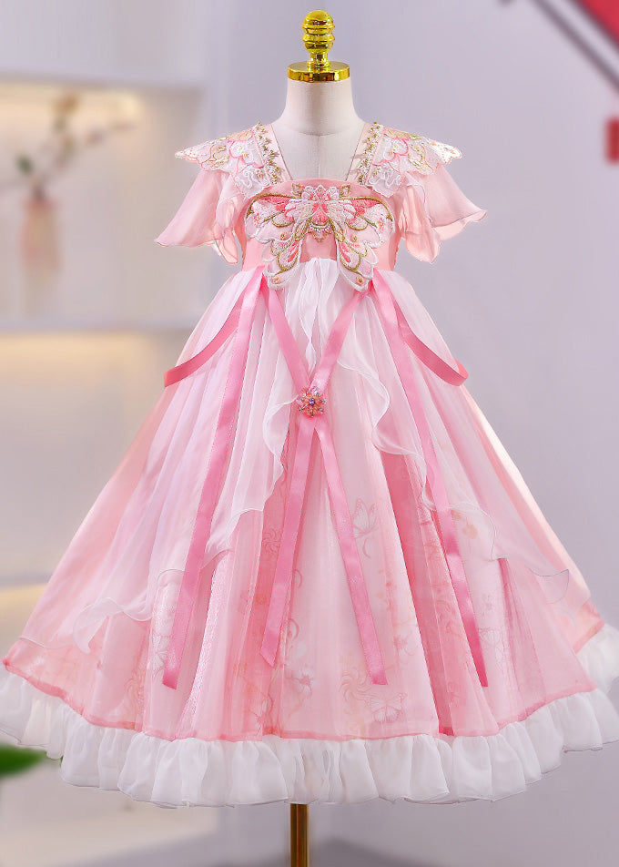 Chic Purple Embroideried Tassel Lace Patchwork Tulle Girls Maxi Dress Summer