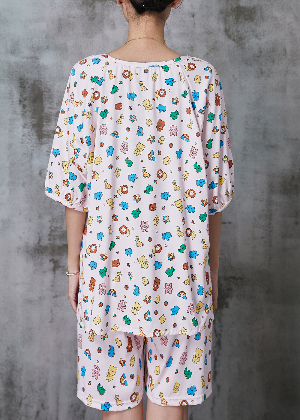 Cute Pink Animal Print Cotton Two Pieces Set Summer