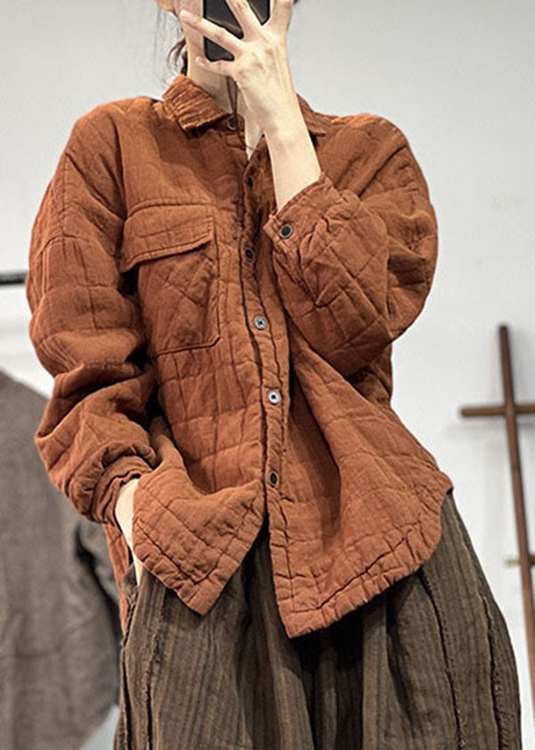 DIY Orange Peter Pan Collar Solid Solid Fine Cotton Filled Linen Coats Winter