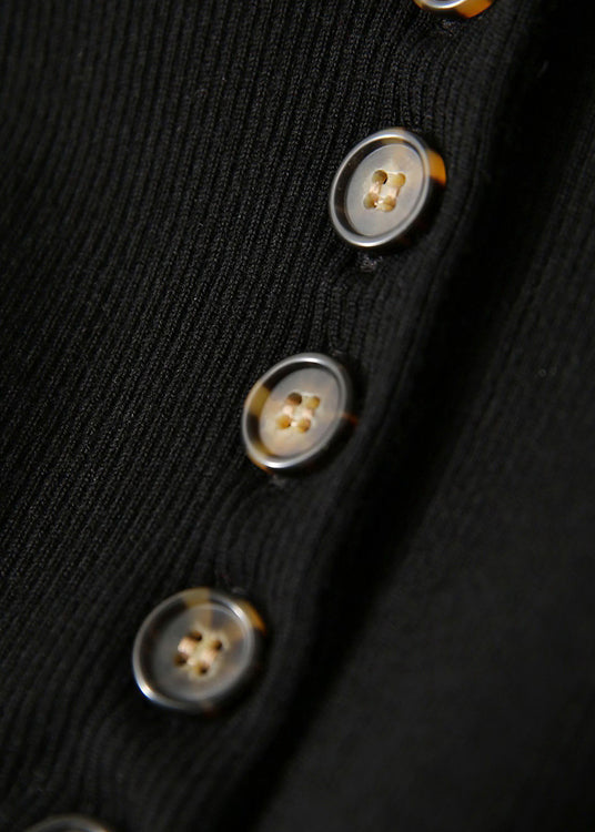 Elegant Dark Gray O-Neck Button Woolen Cardigans Long Sleeve