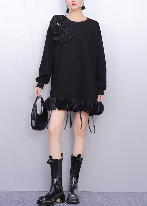 Fall Beige Floral Decorated Crystal Tassel Patchwork Dress