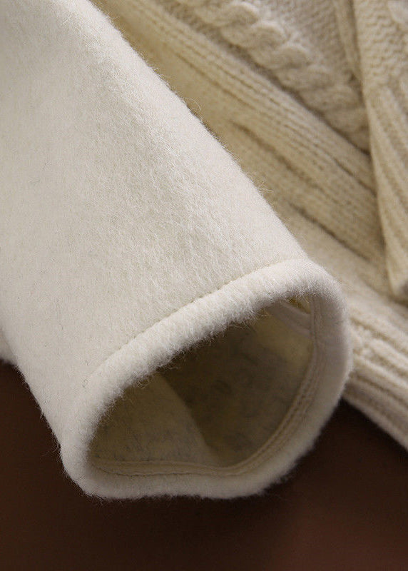Fashion Black V Neck Button Knit Patchwork Woolen Coats Long Sleeve