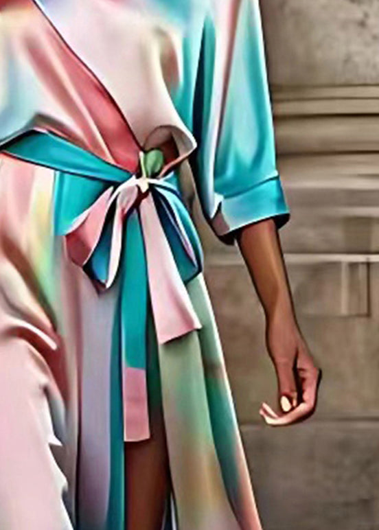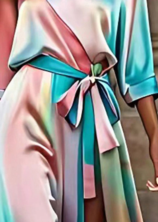 Fashion Rainbow Asymmetrical Patchwork Silk Maxi Dress Summer
