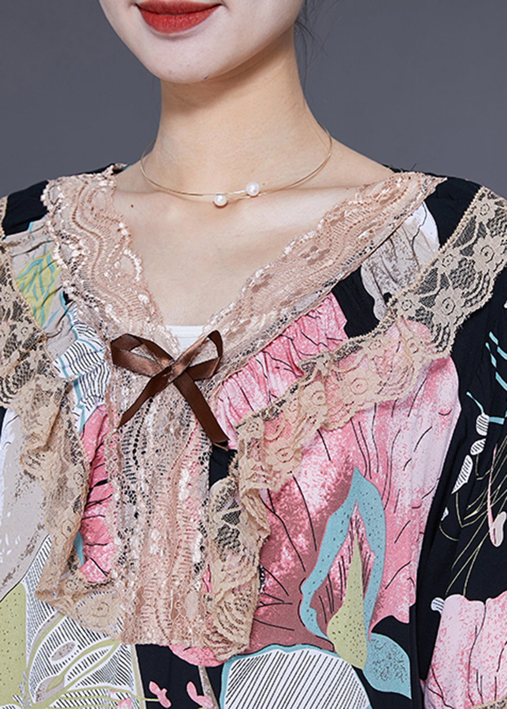 Fine Black Print Lace Patchwork Cotton Holiday Dress Summer