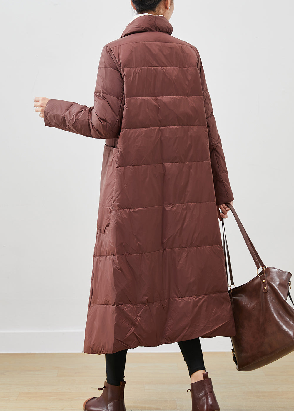 Fitted Brown Stand Collar Chinese Button Duck Down Puffers Jackets Winter