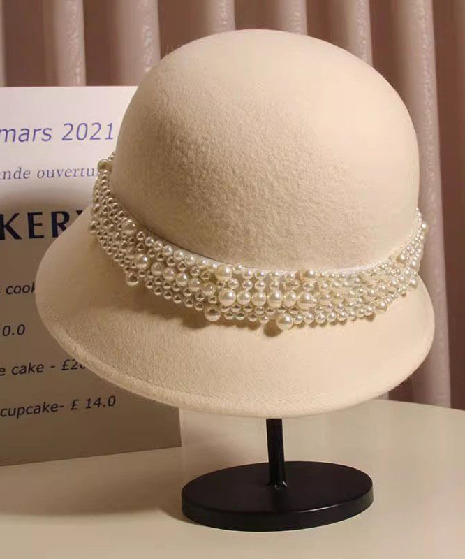 French Black Nail Bead Woolen Bucket Hat