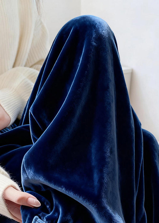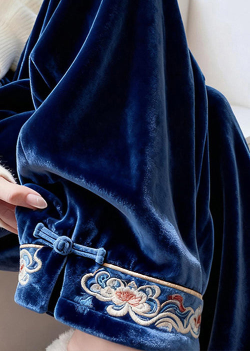 French Blue Embroidered Button Silk Velvet Pants Spring