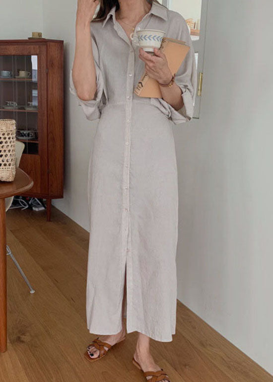 Handmade Light Chocolate Bat wing Sleeve Patchwork Cotton Shirt Dress Long Sleeve