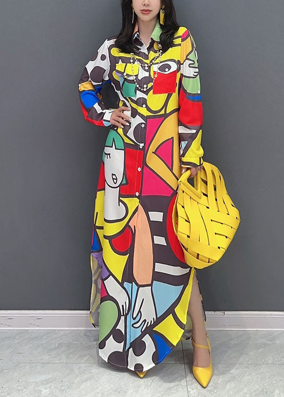 Handmade Yellow Peter Pan Collar Print Patchwork Cotton Shirts Dress Summer