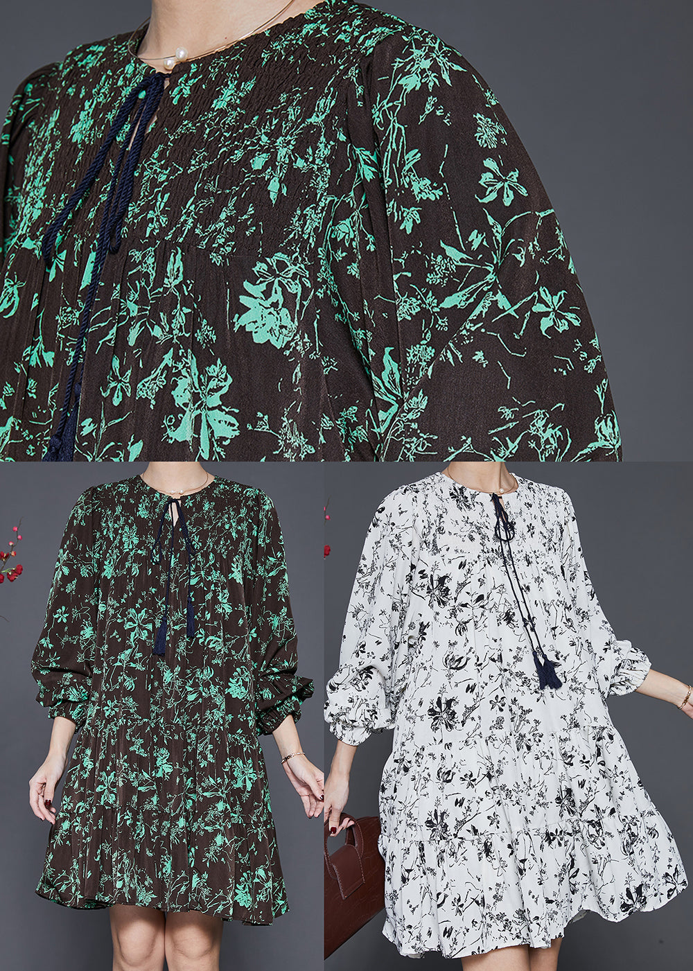 Italian White Print Lace Up Chiffon Mid Dress Spring