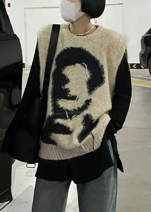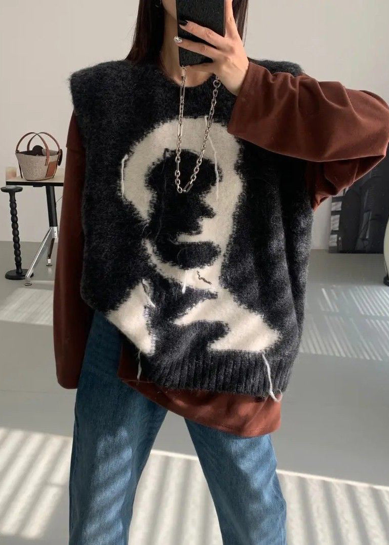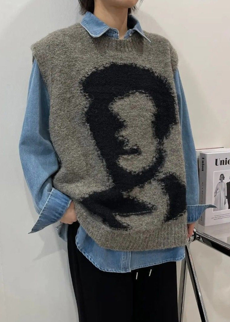Jacquard Green O Neck Cozy Knit Waistcoat Sleeveless