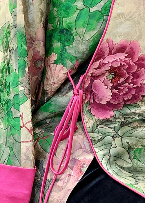 Loose Green Print Button Lace Up Silk Shirts Long Sleeve