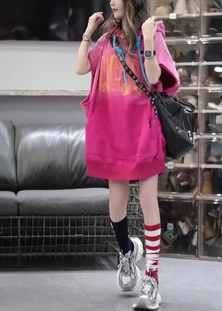 Loose Rose Hooded Print Patchwork Cotton Dresses Sleeveless