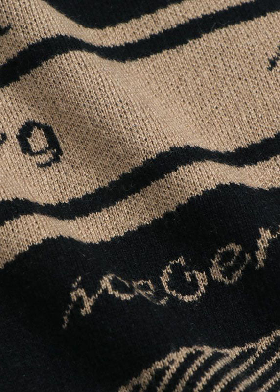 Modern Coffee Turtle Neck Tie Waist Print Knit Dress Batwing Sleeve