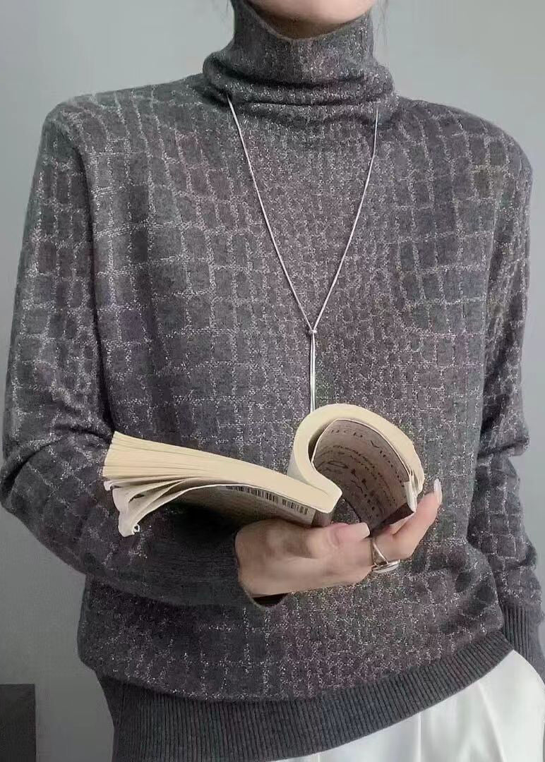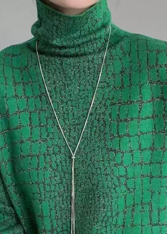 New Black Plaid Turtleneck Patchwork Wool Knit Sweaters Long Sleeve